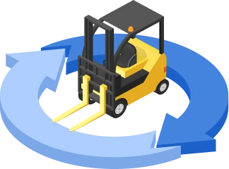 メンテナンス機能・再生バッテリー運用技術・遠隔監視システムを組み合わせて、電動フォークリフト運用に関するお客様の課題解決を目指します。