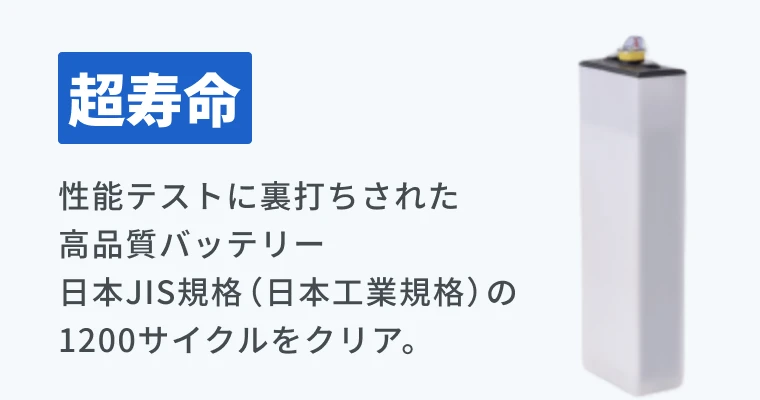 日本JIS規格1200サイクルをクリアした高品質バッテリー。