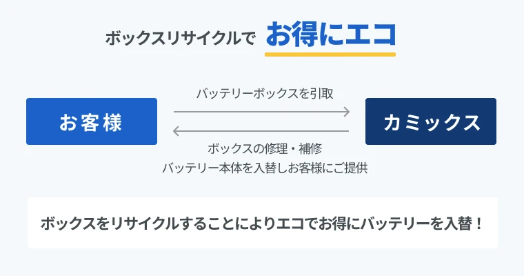バッテリーボックスを引取りリサイクルすることにより環境にもエコ。